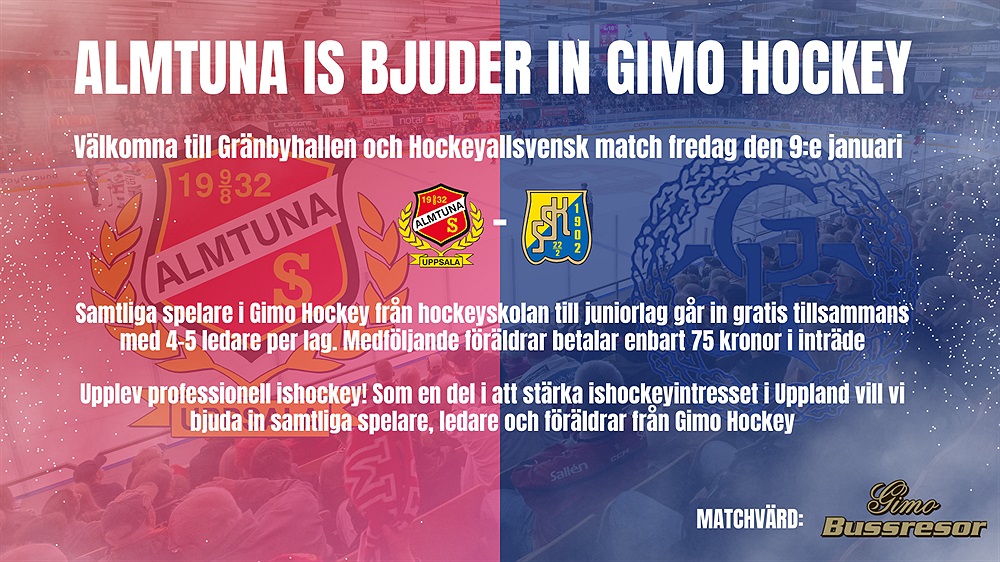 Vi kommer erbjuda bussresa från Gimo ishall till matchen i samarbete med Gimo bussresor!